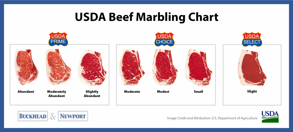 和牛と同様、主に脂肪交雑(マーブリング)と成熟度で決まる。
